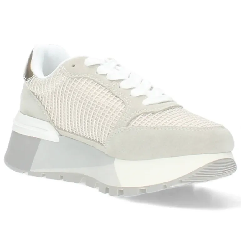 Beige plateau sneakers met een uitneembare binnenzool .Het model dat we tonen op de foto is maat 37.