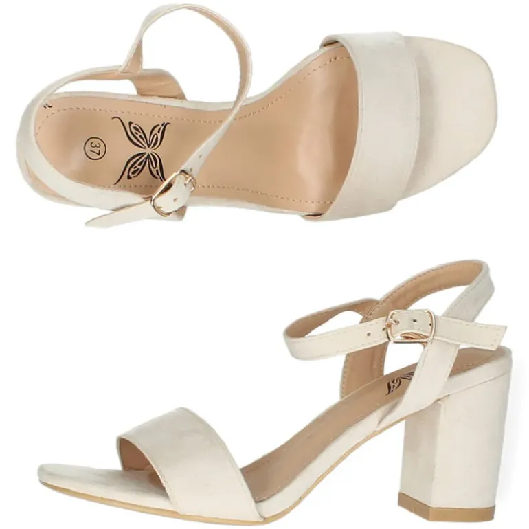 Deze beige sandalen hebben een hak van 7 cm.Het model dat we tonen op de foto is maat 37.