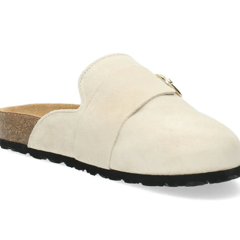 Beige slippers met een lederen zool .Het model dat we tonen op de foto is maat 37.