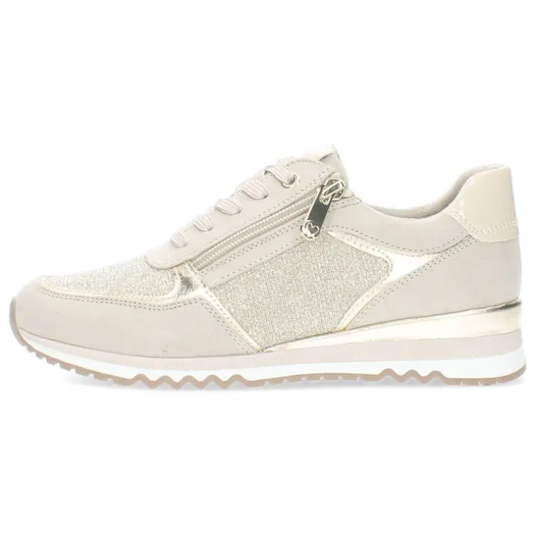 Beige sneakers met een uitneembare binnenzool en een rits.Het model dat we tonen op de foto is maat 37.