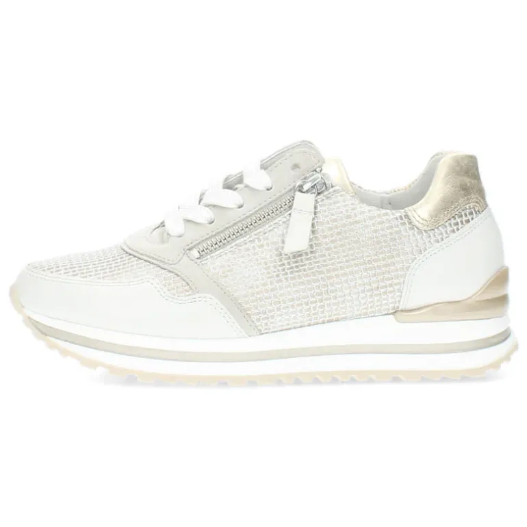 Beige sneakers met een uitneembare binnenzool en een rits.Het model dat we tonen op de foto is maat 37.