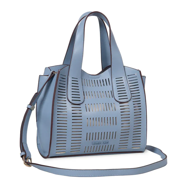 Deze blauwe handtas heeft een hoogte van 25 cm, een breedte van 22 cm en een diepte van 10 cm.