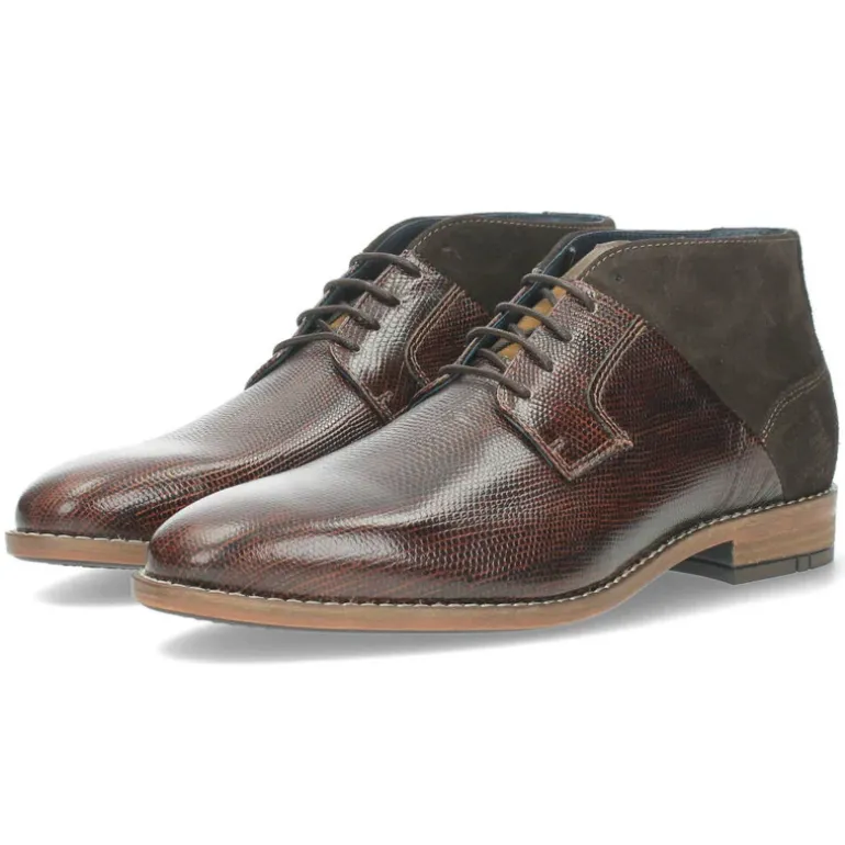 Bruine veterschoenen hoog model met een uitneembare lederen binnenzool.Het model dat we tonen op de foto is maat 41.