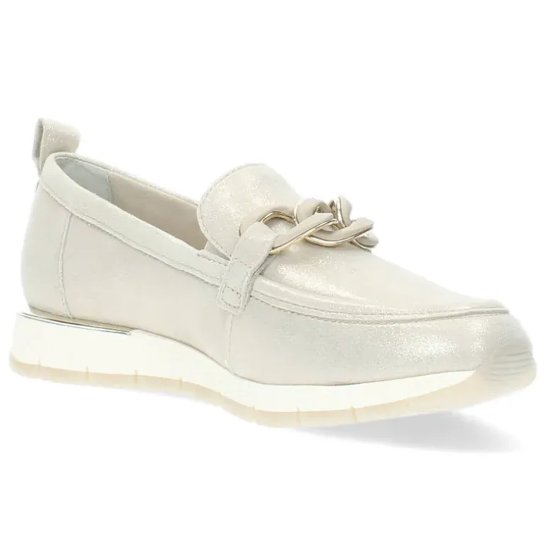Champagne loafers met een uitneembare binnenzool .Het model dat we tonen op de foto is maat 37.