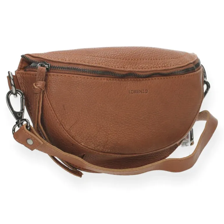 Deze cognac heuptas heeft een hoogte van 15 cm, een breedte van 25 cm en een diepte van 6 cm. Deze tas wordt geleverd met .