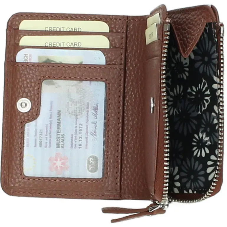 Deze cognac portefeuille heeft een hoogte van 8 cm, een breedte van 11 cm en een diepte van 2 cm.