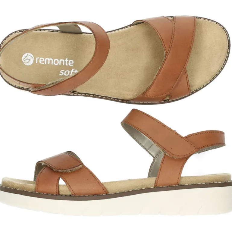 Cognac sandalen met velcro’s.Het model dat we tonen op de foto is maat 37.
