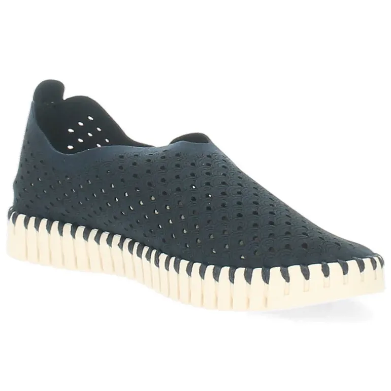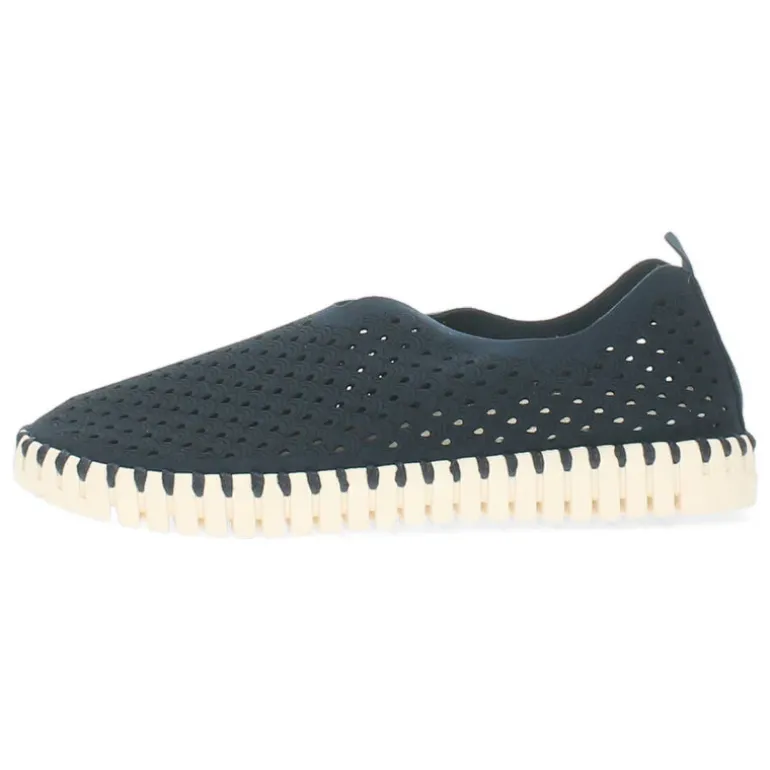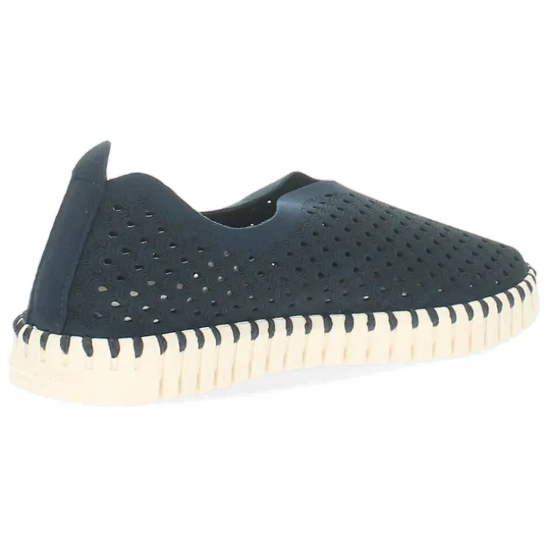 Donkerblauwe instappers met een uitneembare binnenzool.Het model dat we tonen op de foto is maat 37.