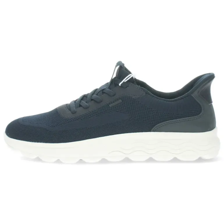Donkerblauwe sneakers met een uitneembare binnenzool en elastische veters.Het model dat we tonen op de foto is maat 41.