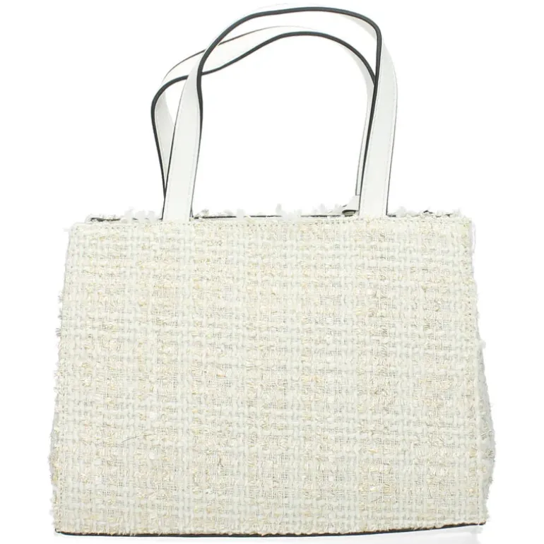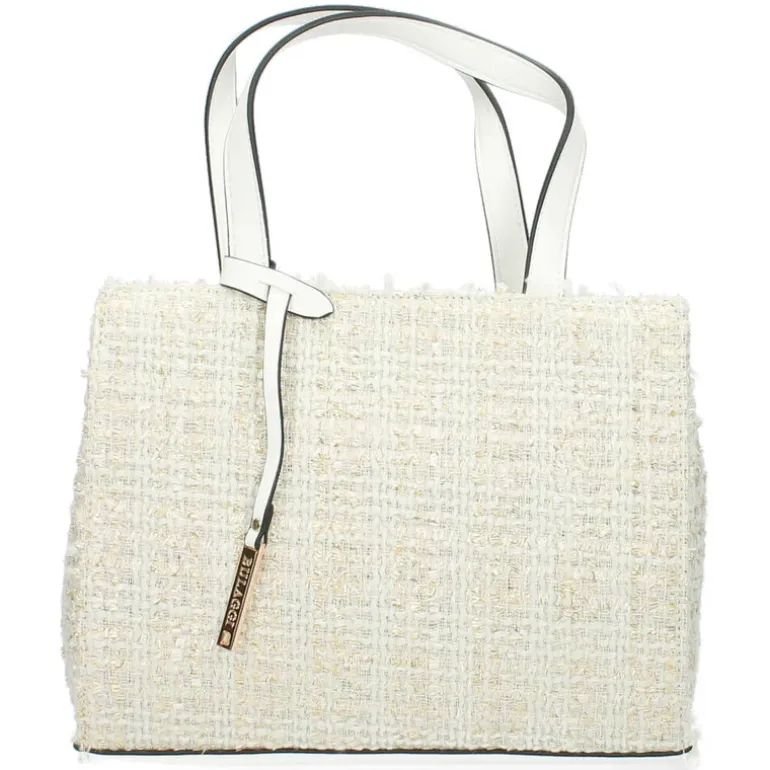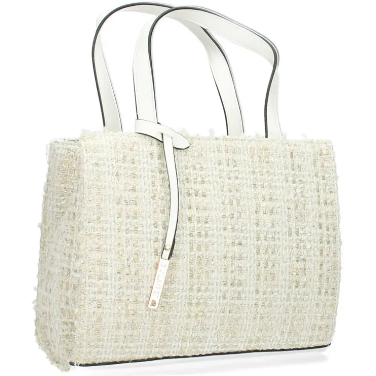Deze ecru handtas heeft een hoogte van 21 cm, een breedte van 27 cm en een diepte van 8 cm.