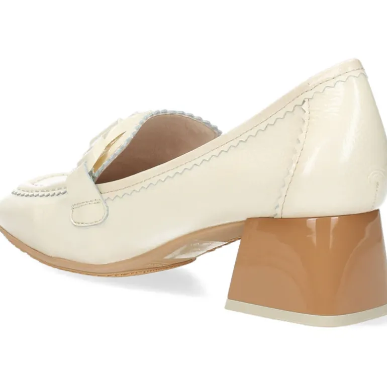 Deze Ecru moccasins op hak hebben een hak van 5 cm.Het model dat we tonen op de foto is maat 37.