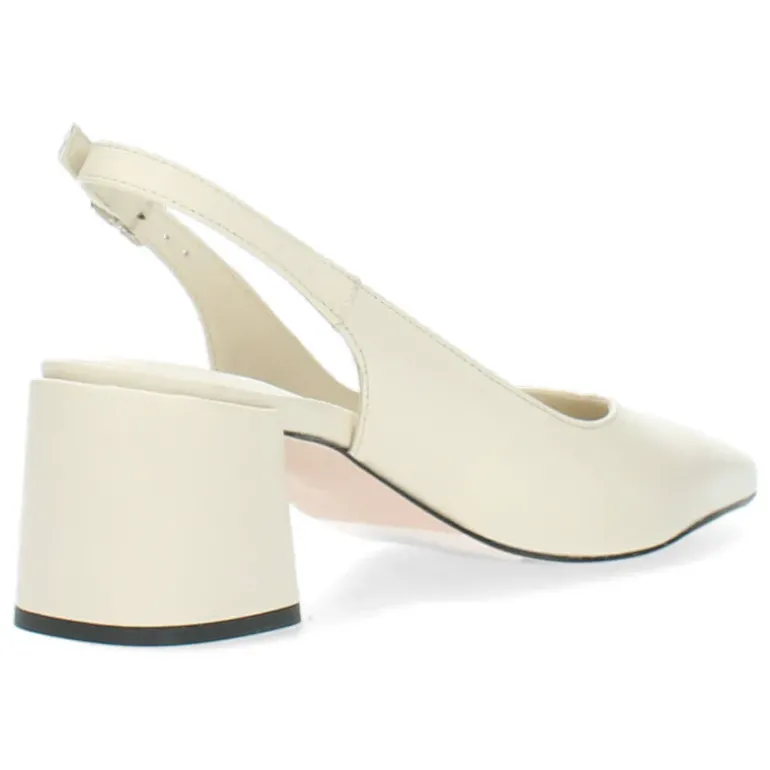 Deze Ecru slingbacks hebben een hak van 6 cm.Het model dat we tonen op de foto is maat 37.