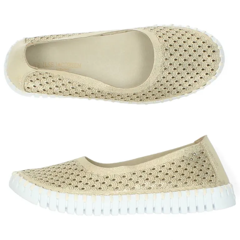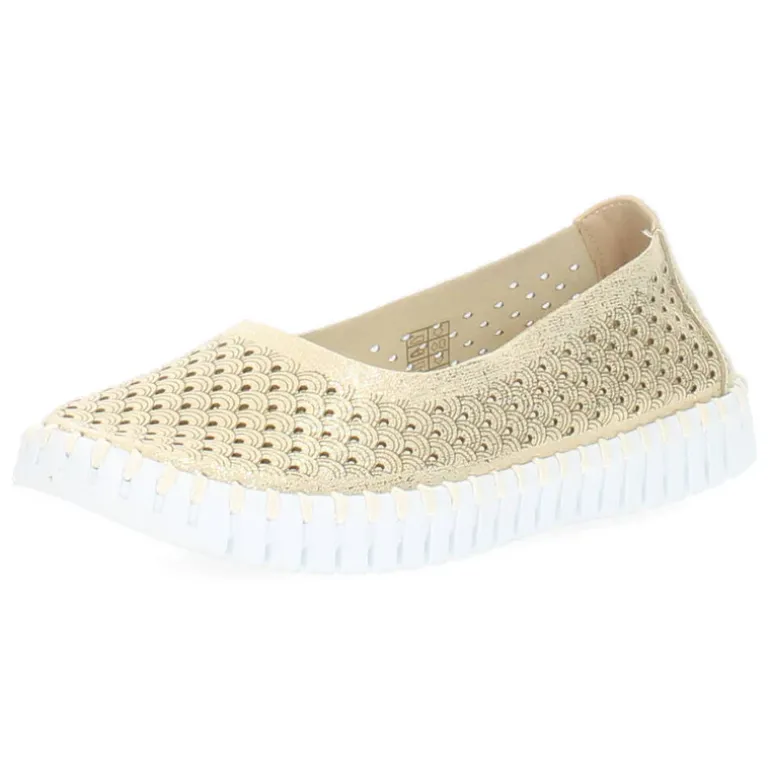 Gouden instappers met een uitneembare binnenzool.Het model dat we tonen op de foto is maat 37.