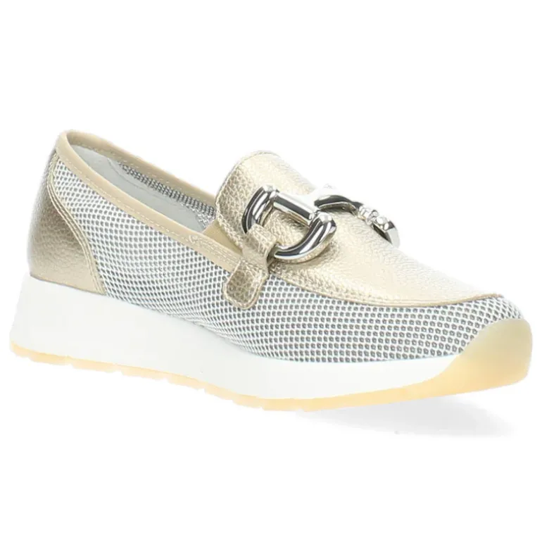 Gouden loafers met een uitneembare binnenzool .Het model dat we tonen op de foto is maat 37.
