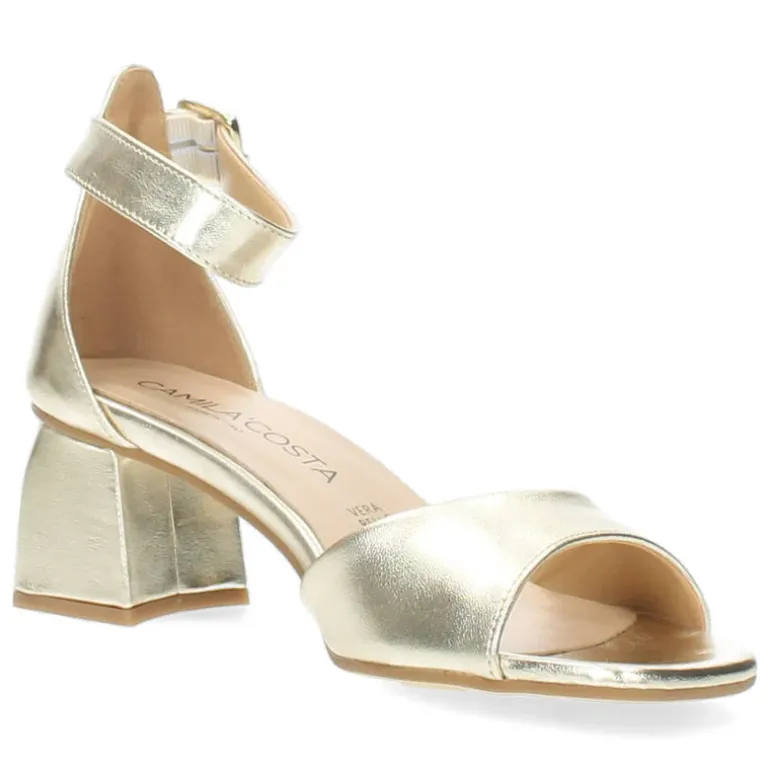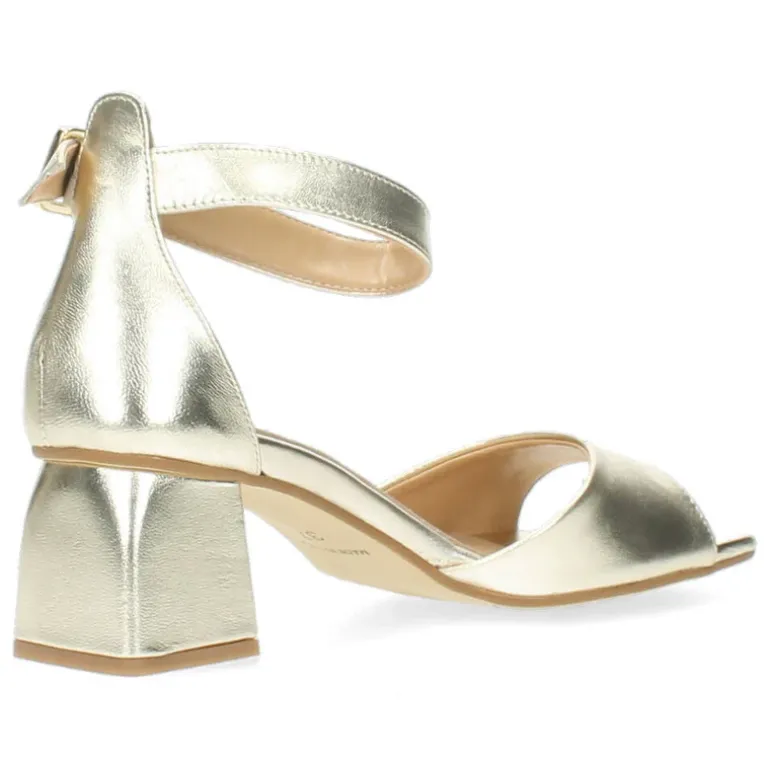 Deze gouden sandalen hebben een hak van 5 cm.Het model dat we tonen op de foto is maat 37.