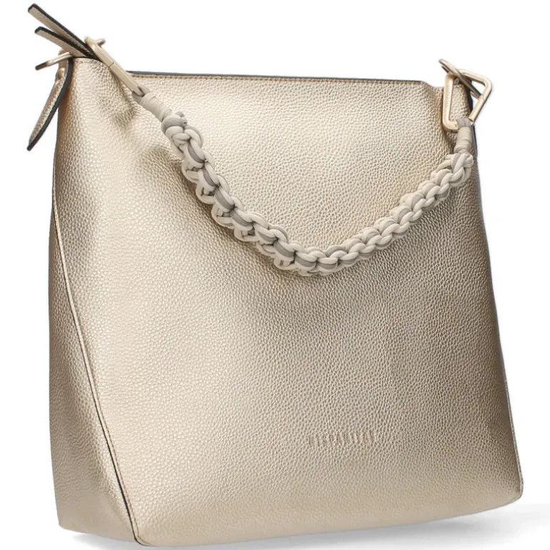 Deze gouden schoudertas heeft een hoogte van 30 cm, een breedte van cm en een diepte van 10 cm.