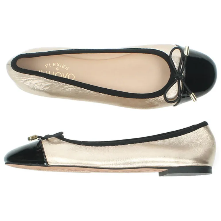 Gouden/zwarte ballerina’s met een comfortabele binnenzool .Het model dat we tonen op de foto is maat 37.