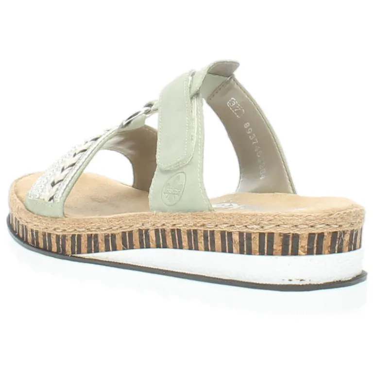 Groene slippers met een velcro.Het model dat we tonen op de foto is maat 37.