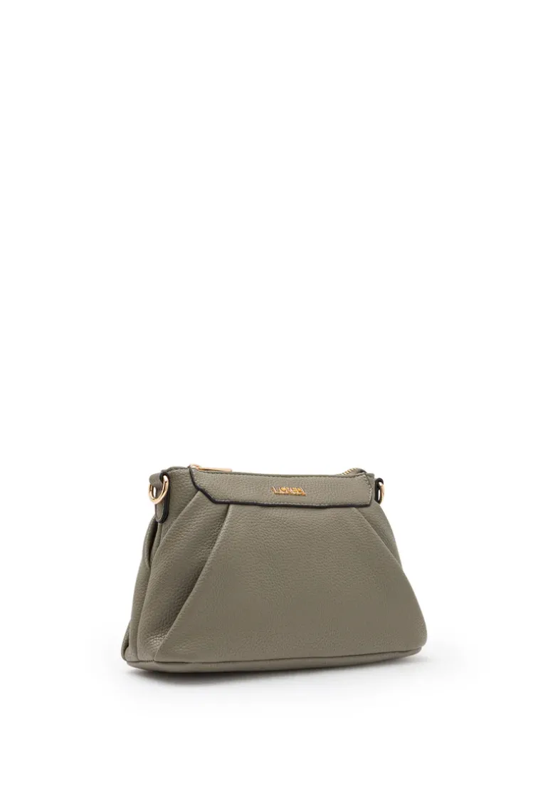 Deze khaki handtas heeft een hoogte van 15 cm, een breedte van 8 cm en een diepte van 24 cm.