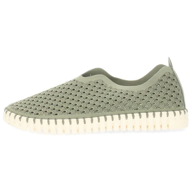 Khaki instappers met een uitneembare binnenzool.Het model dat we tonen op de foto is maat 37.