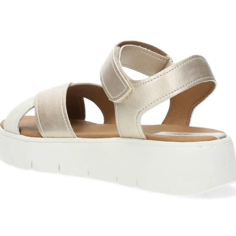 Metallic beige sandalen met een velcro.Het model dat we tonen op de foto is maat 37.