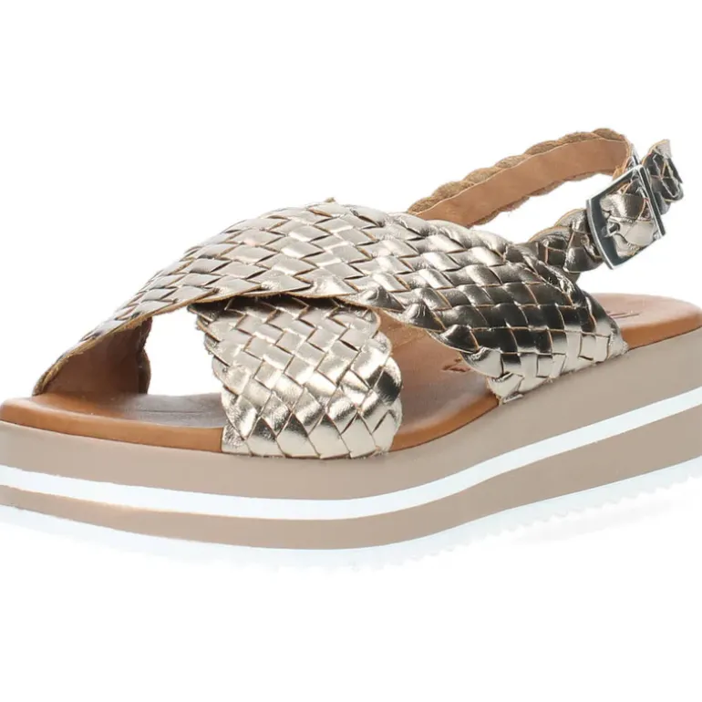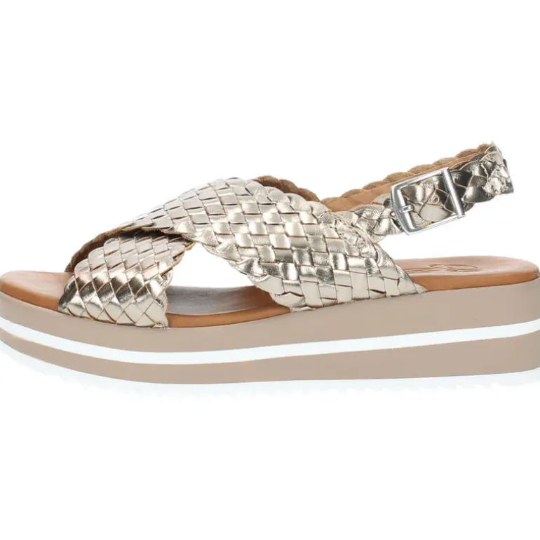 Metallic bronzen sandalen met een comfortabele zool.Het model dat we tonen op de foto is maat 37.