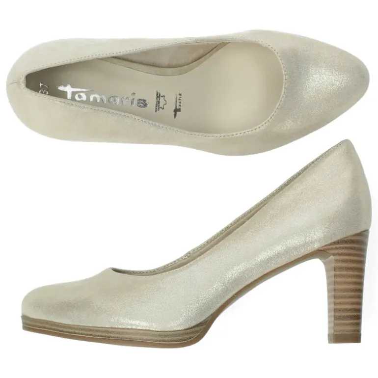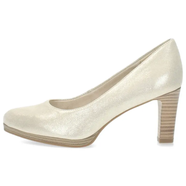 Deze Metallic gouden pumps hebben een hak van 7,5 cm.Het model dat we tonen op de foto is maat 37.