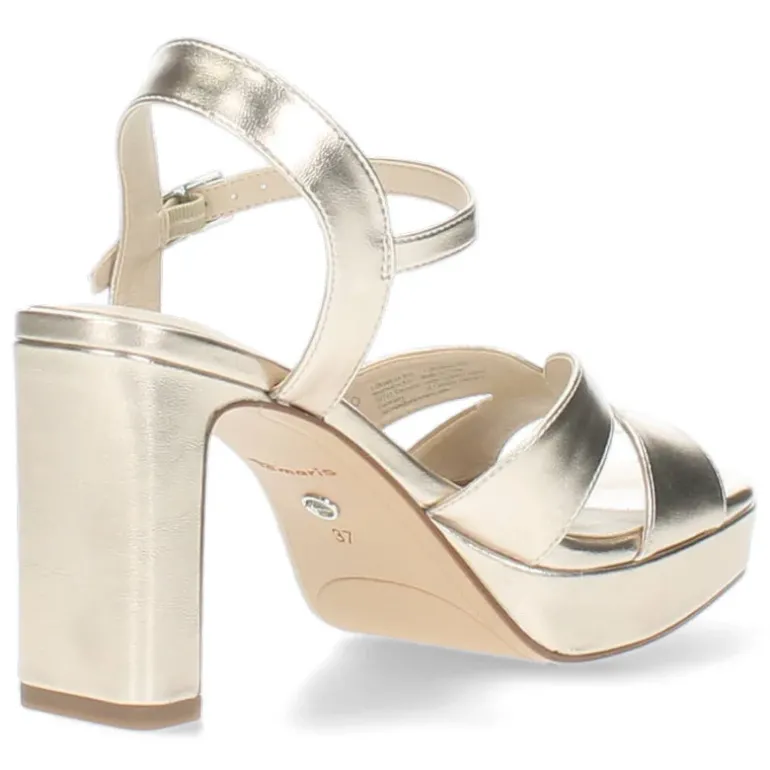 Deze metallic sandalen hebben een hak van 8 cm.Het model dat we tonen op de foto is maat 37.