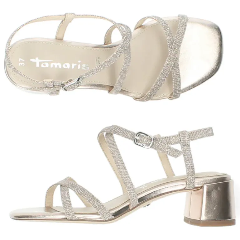 Deze Rosé sandalen hebben een hak van 5 cm.Het model dat we tonen op de foto is maat 37.