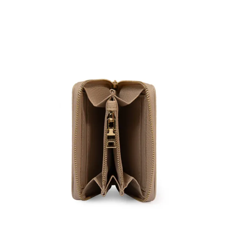 Deze taupe portefeuille heeft een hoogte van 11 cm, een breedte van 7 cm en een diepte van 2 cm.