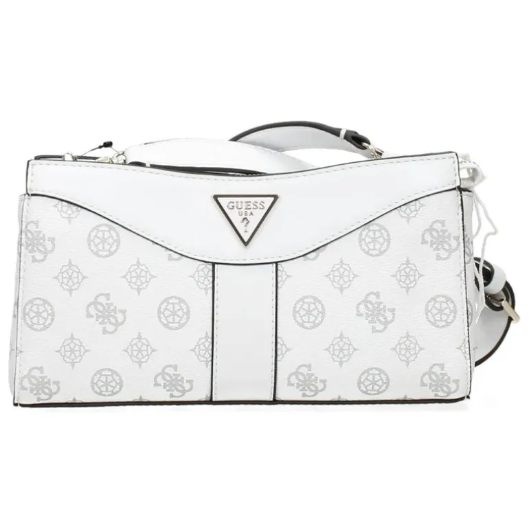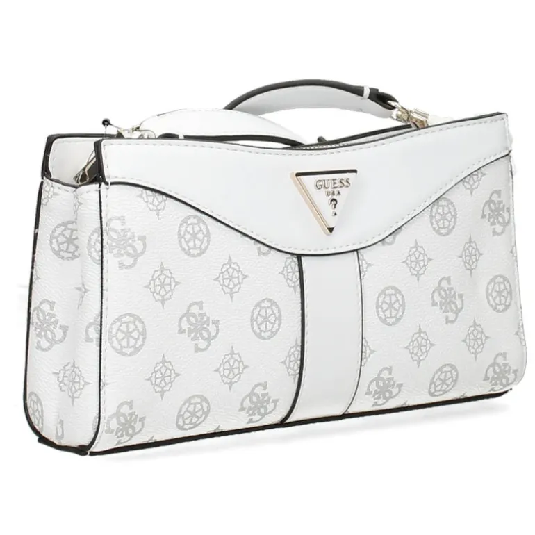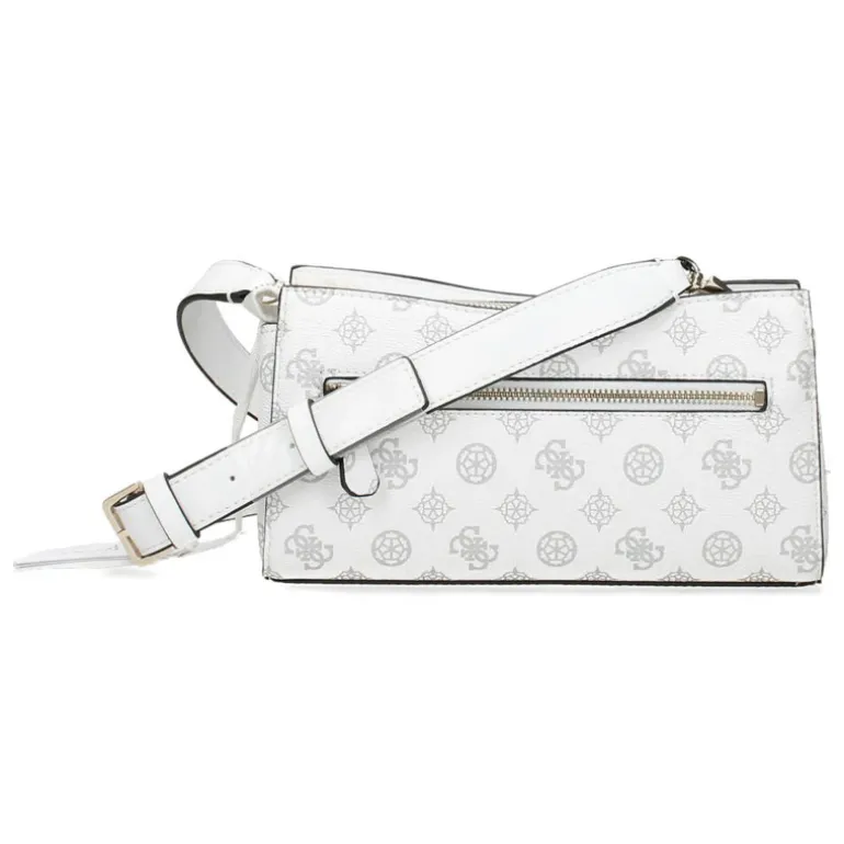Deze witte handtas heeft een hoogte van 12 cm, een breedte van 23 cm en een diepte van 4 cm.