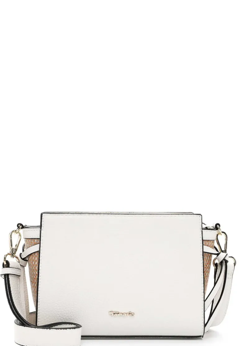 Deze witte handtas heeft een hoogte van 16 cm, een breedte van 21 cm en een diepte van 9 cm.