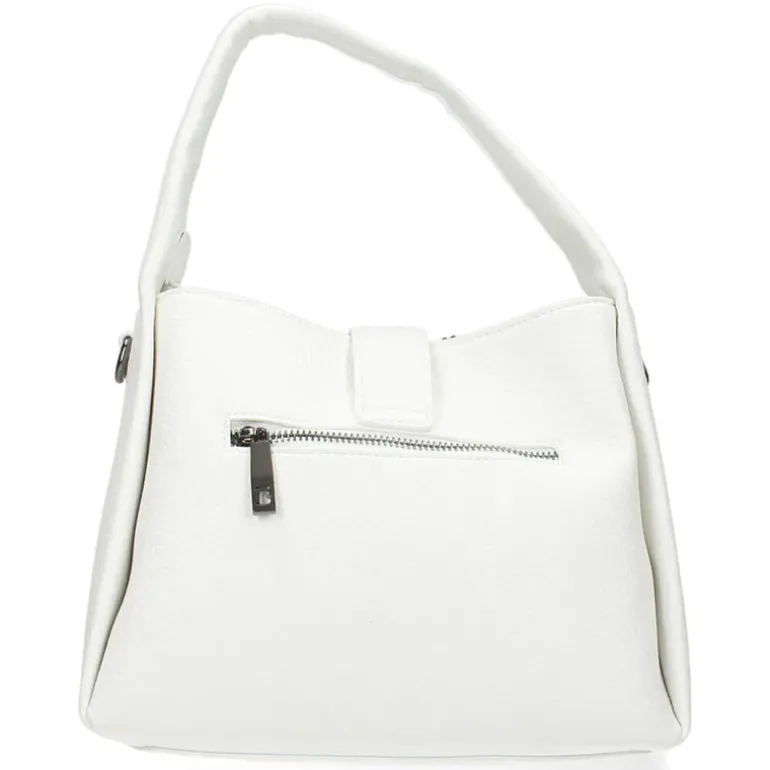 Deze witte handtas heeft een hoogte van 20 cm, een breedte van 24 cm en een diepte van 10 cm.