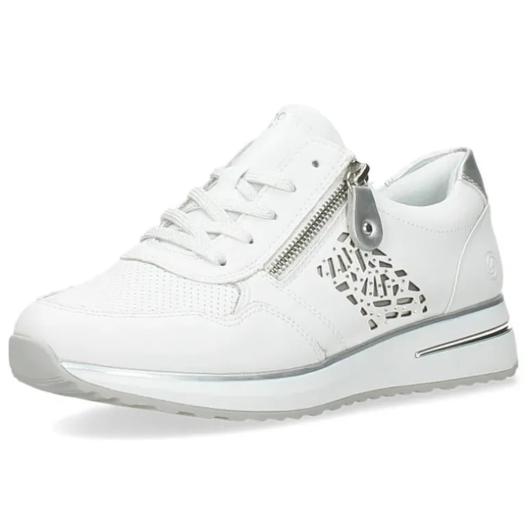 Witte sneakers met een uitneembare binnenzool en een rits.Het model dat we tonen op de foto is maat 37.