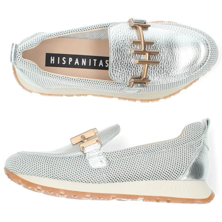 Zilveren loafers met een uitneembare binnenzool .Het model dat we tonen op de foto is maat 37.