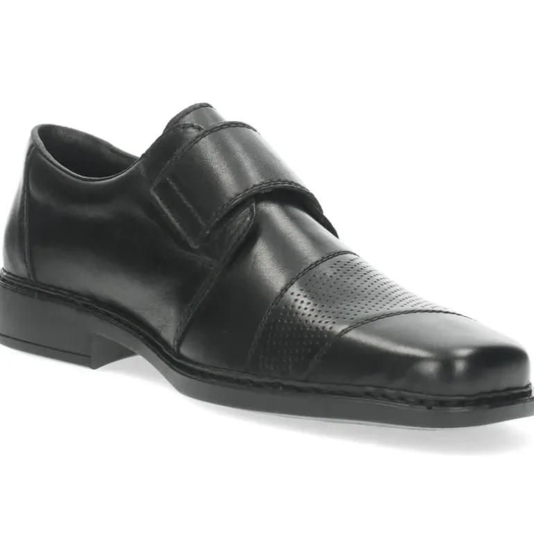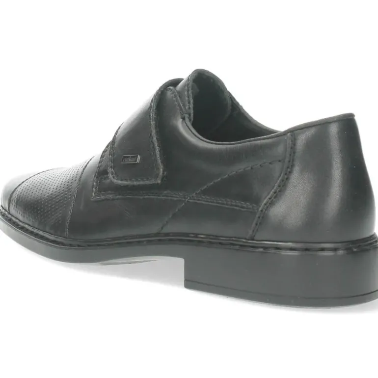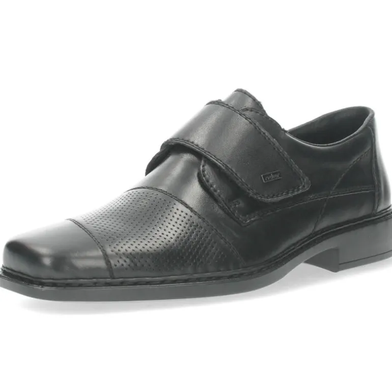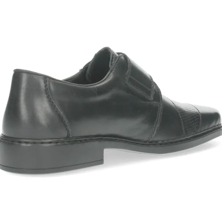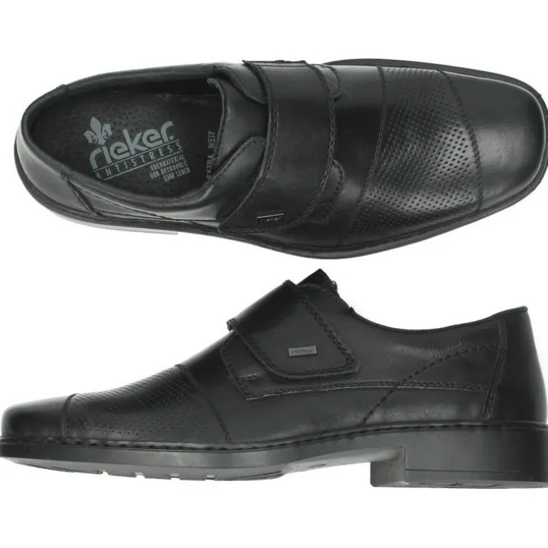 Zwarte slip-ons met een velcro.Het model dat we tonen op de foto is maat 41.