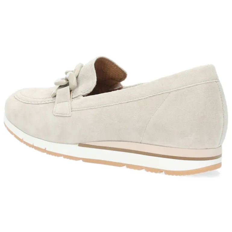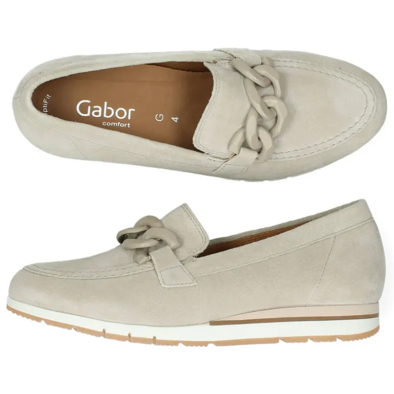 Beige loafers met een uitneembare binnenzool.Het model dat we tonen op de foto is maat 37.