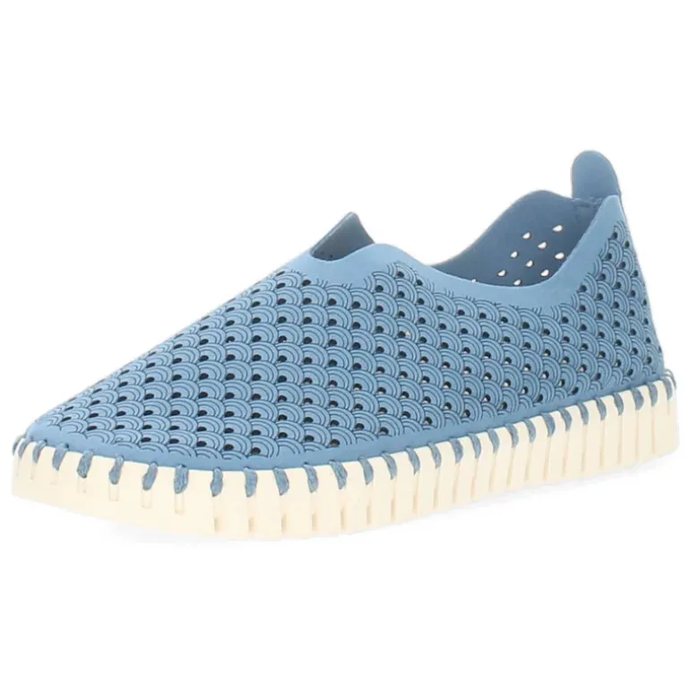 Blauwe instappers met een uitneembare binnenzool.Het model dat we tonen op de foto is maat 37.