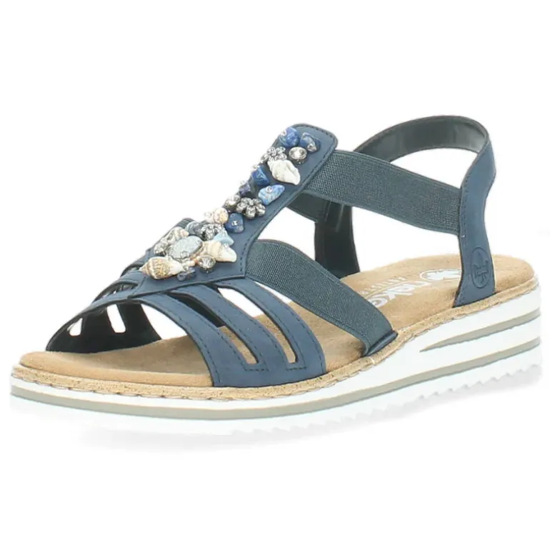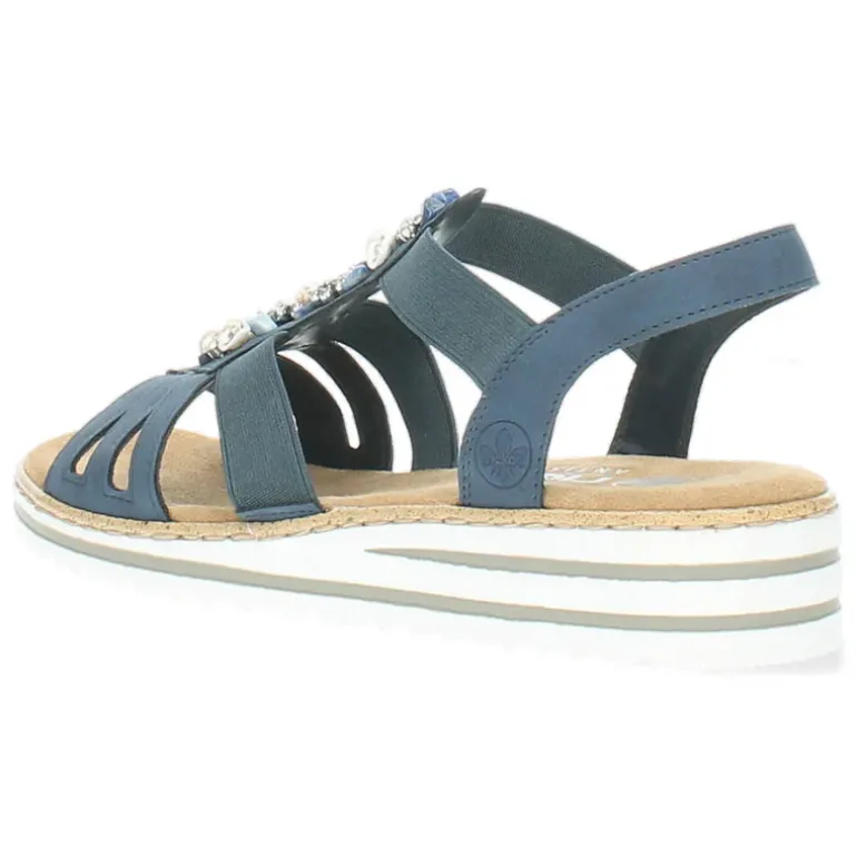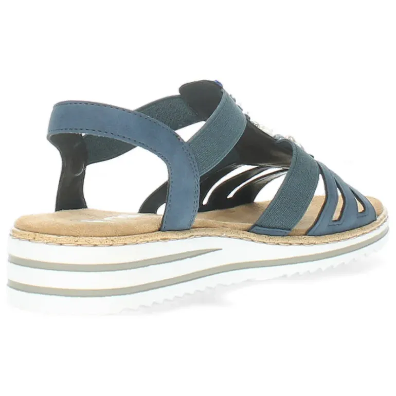 Blauwe sandalen met een rekker.Het model dat we tonen op de foto is maat 37.