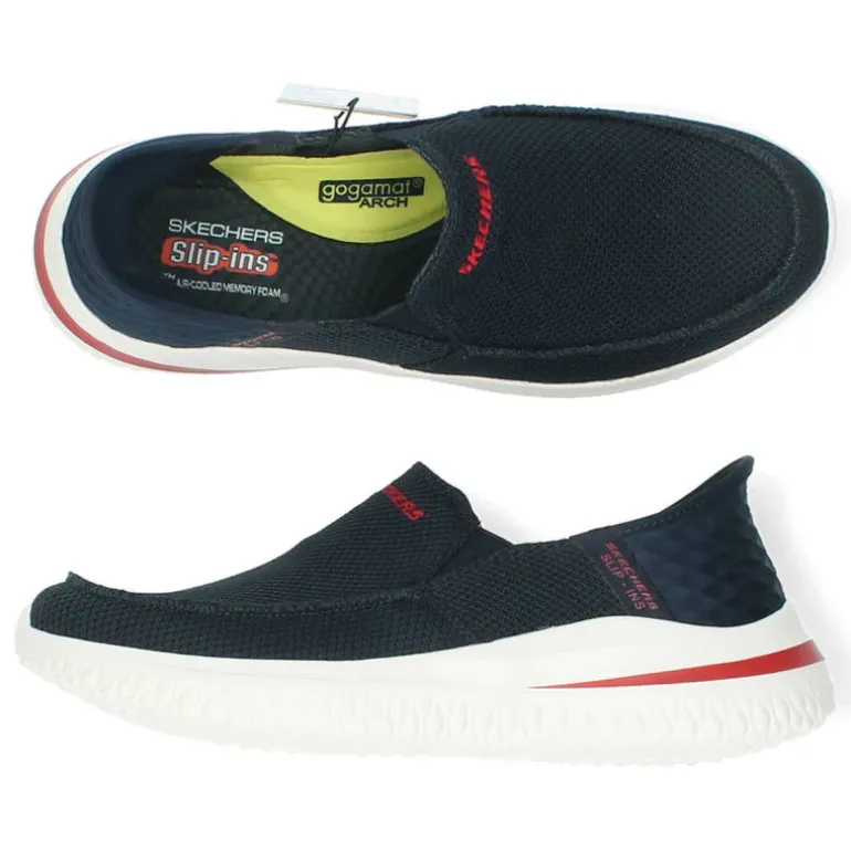 Blauwe slip-ons met een comfortabele binnenzool.Het model dat we tonen op de foto is maat 41.