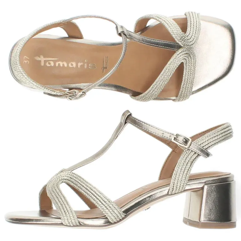 Deze Bronzen sandalen hebben een hak van 5 cm.Het model dat we tonen op de foto is maat 37.