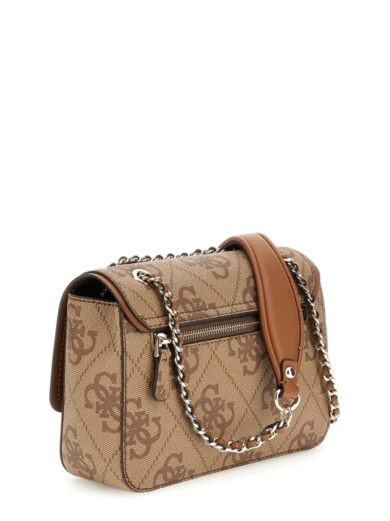 Deze bruine schoudertas heeft een hoogte van 15 cm, een breedte van 22 cm en een diepte van 7 cm.