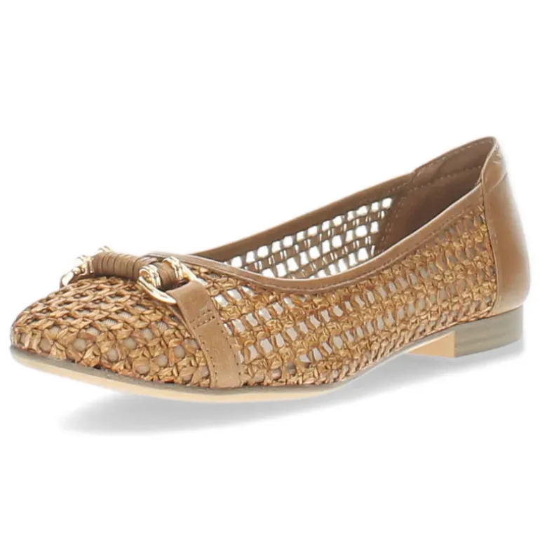 Cognac ballerina’s met een comfortabele binnenzool.Het model dat we tonen op de foto is maat 37.