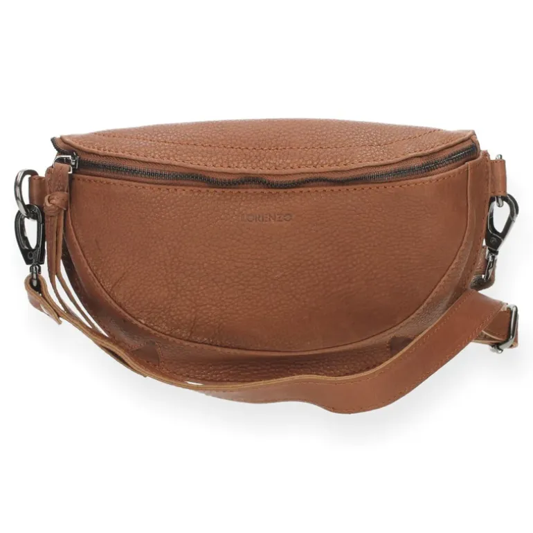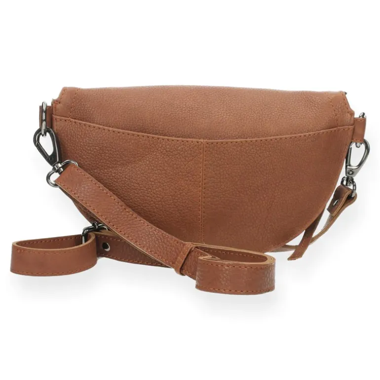 Deze cognac heuptas heeft een hoogte van 15 cm, een breedte van 25 cm en een diepte van 6 cm. Deze tas wordt geleverd met .
