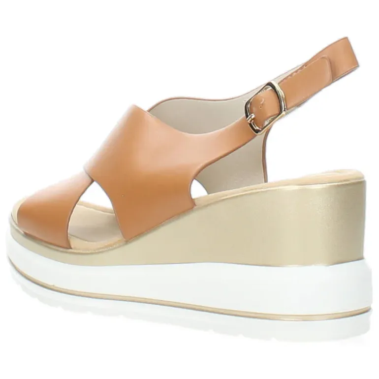 Deze cognac sandalen hebben een hak van 7 cm.Het model dat we tonen op de foto is maat 37.