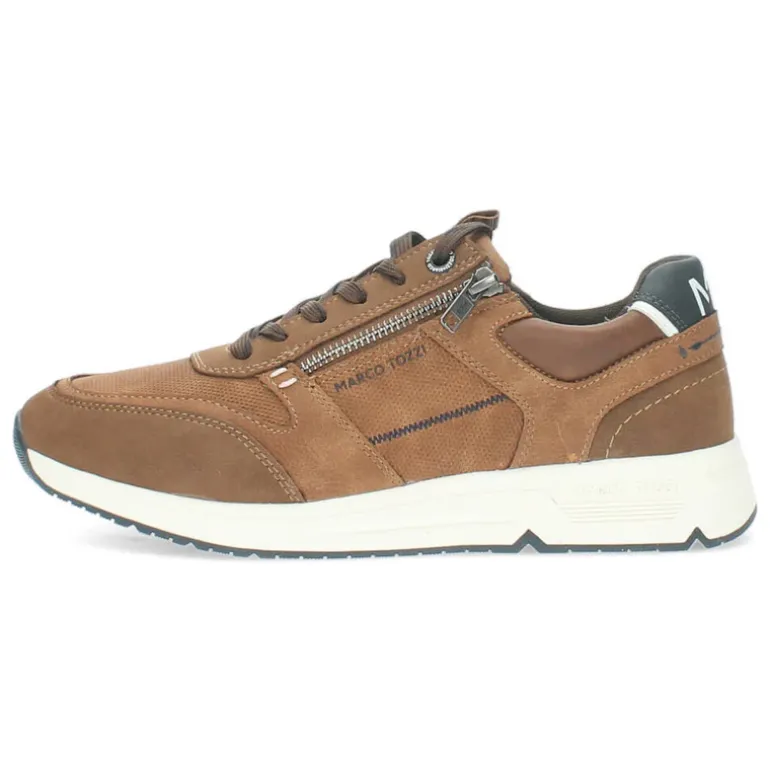 Cognac sneakers met een rits.Het model dat we tonen op de foto is maat 41.