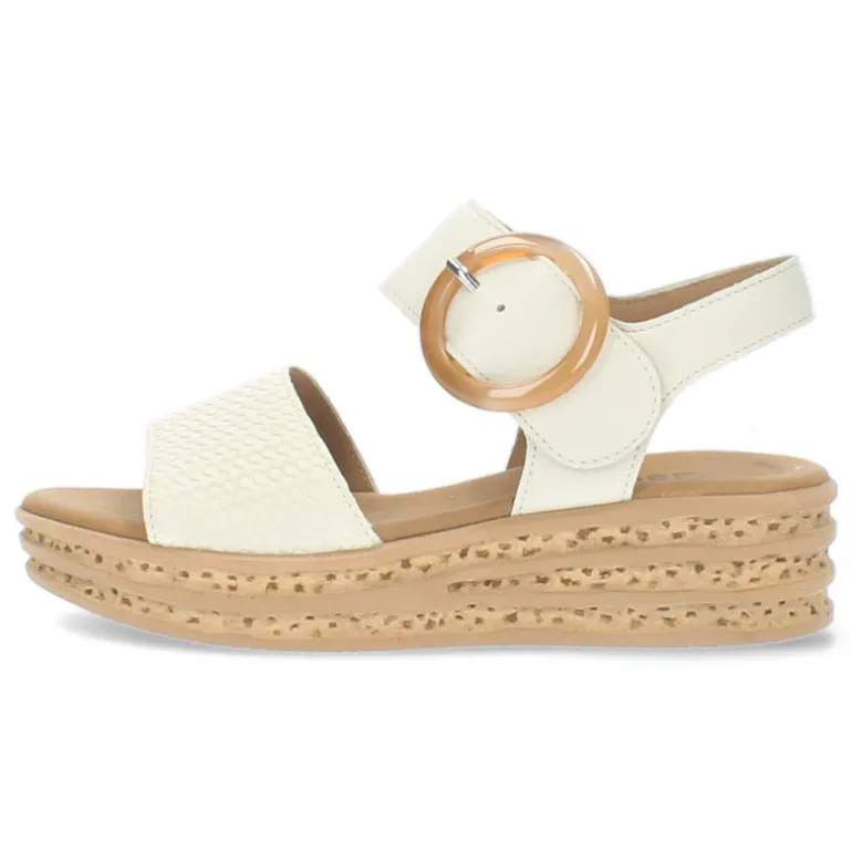 Crème kleurige sandalen met een velcro.Het model dat we tonen op de foto is maat 37.
