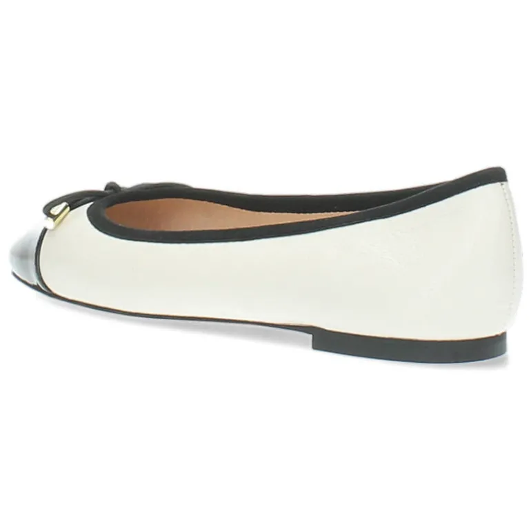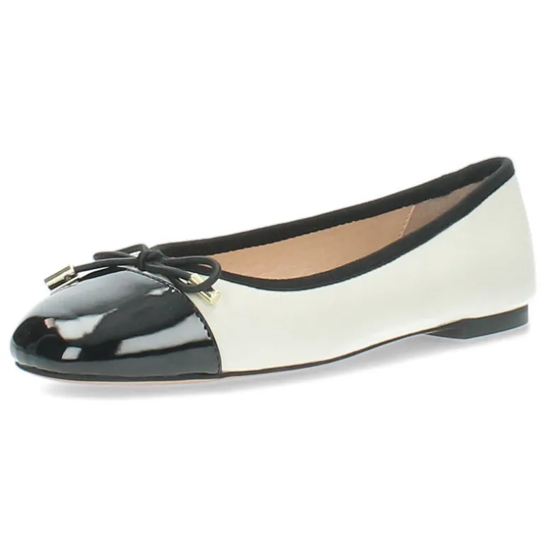 Crème/zwarte ballerina’s met een comfortabele binnenzool .Het model dat we tonen op de foto is maat 37.