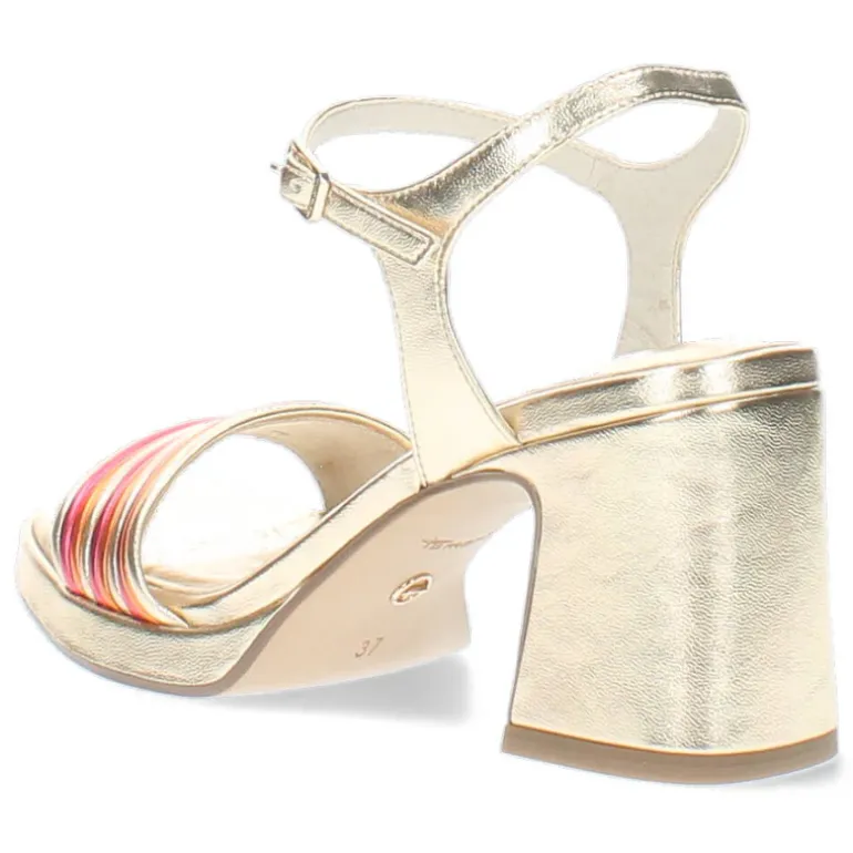 Deze gouden sandalen hebben een hak van 8 cm.Het model dat we tonen op de foto is maat 37.