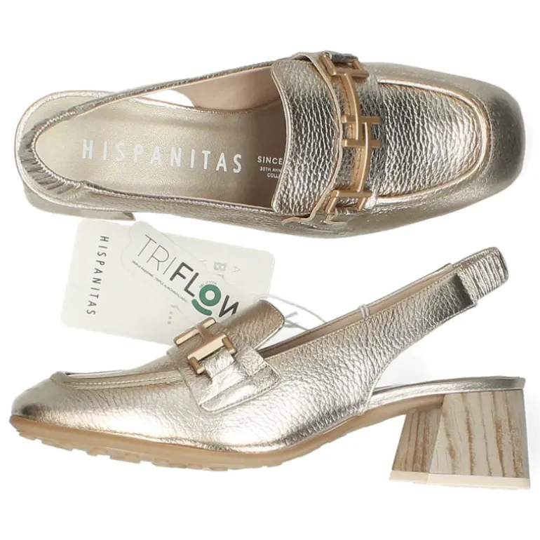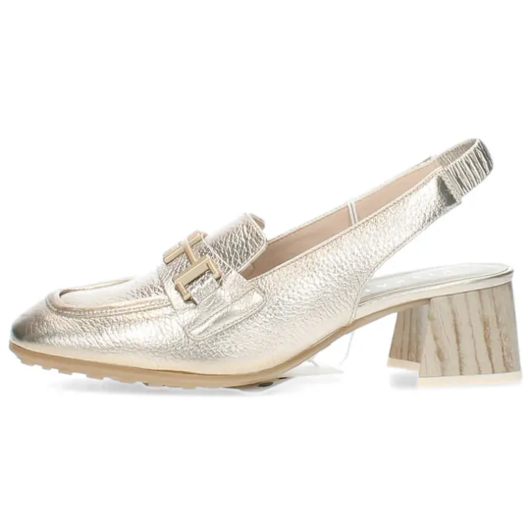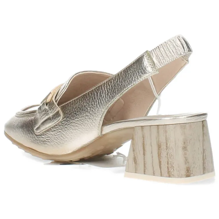 Deze gouden slingbacks hebben een hak van 5 cm.Het model dat we tonen op de foto is maat 37.